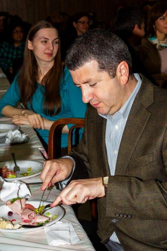 Дети наших прихожан подготовили небольшой концерт — песни и стихи. Было замечательно музыкальное сопровождение, а песню «Золотая свадьба» детям пришлось исполнять два раза — так она популярна у наших прихожан, особенно старшего поколения! Отец Анатолий попросил подняться одну пару Веру и Чарльза Ольшевских, у которых как раз грядет юбилей свадьбы — 60 лет. Все присутствующие поддержали поздравление настоятеля громкими аплодисментами.