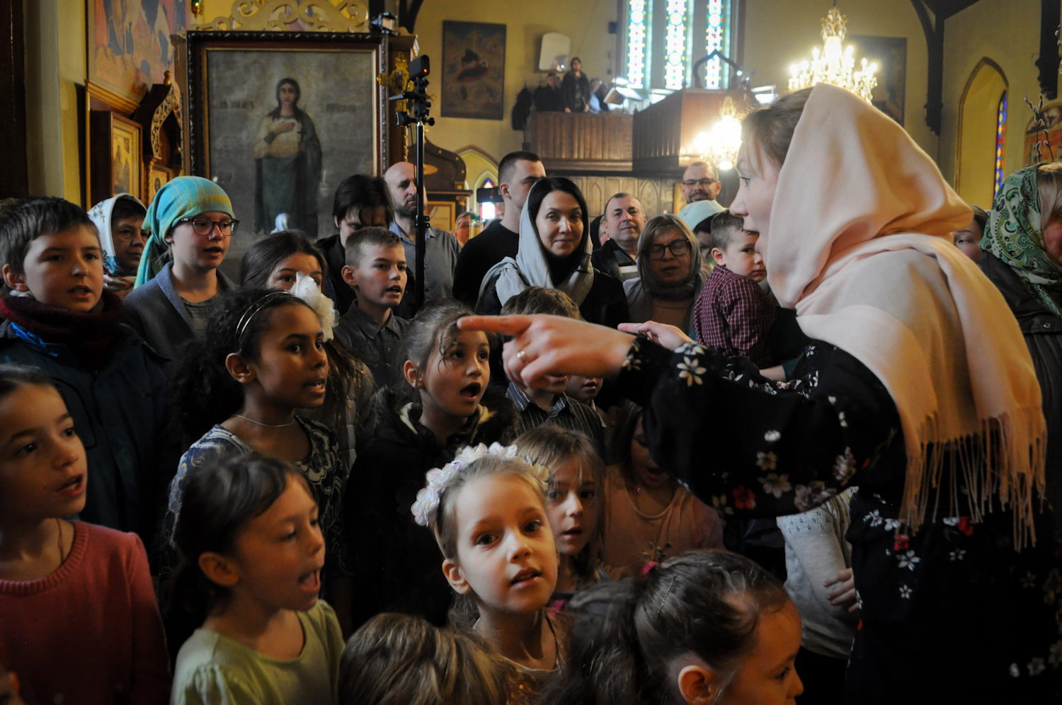 В праздник Входа Господня во Иерусалим у учеников воскресной школы было много дел во славу Божию! Как дети, которые восхваляли Господа в храме, поя: «Осанна Сыну Давидову!» (Мф. 21:15), ― наши пели Богу во время Литургии. Громкими звонкими голосками они отвечали на прошения просительной Ектении и пели «Отче наш» на французском языке. Напомним, что службу возглавлял Владыка Ириней.