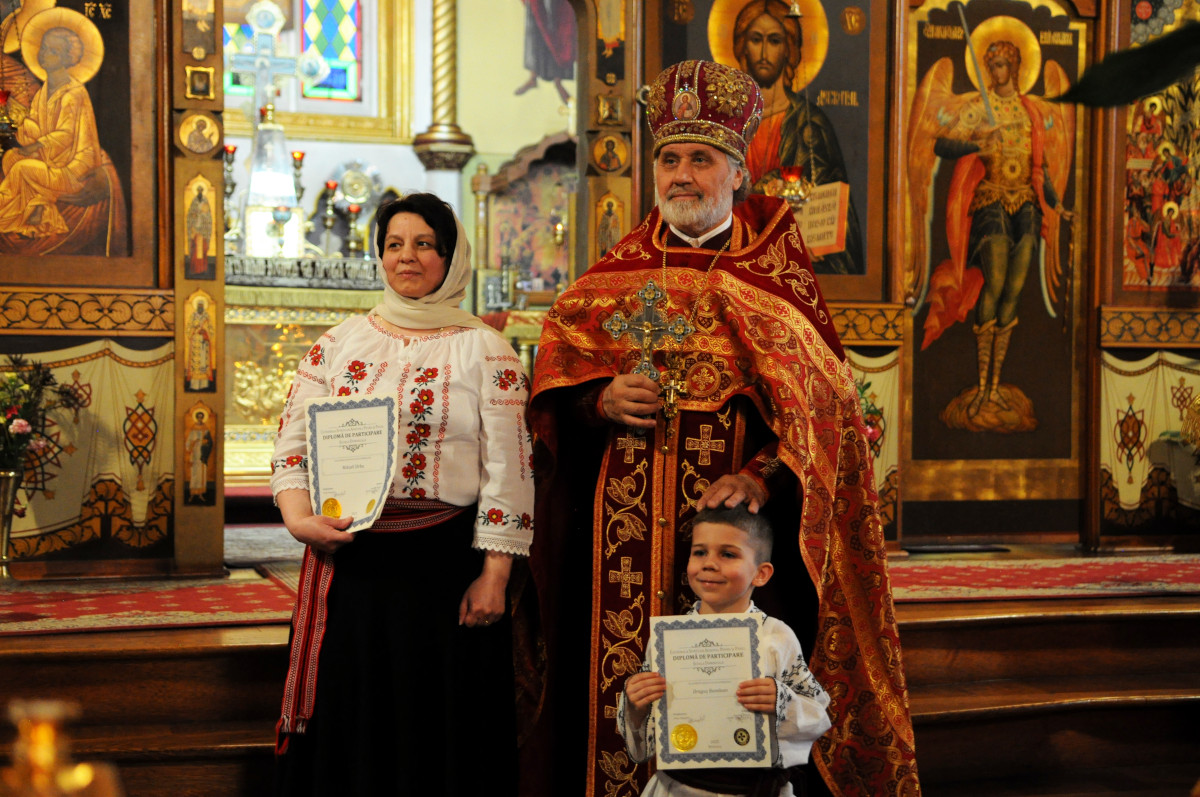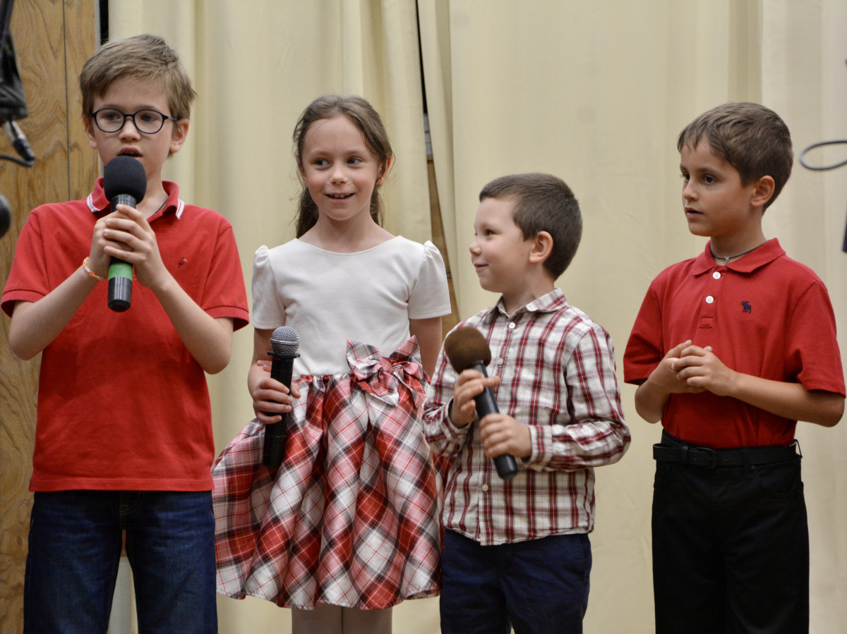 На первом прозвучали стихотворения на пасхальную тему: читали учащиеся группы русского языка под руководством Марины Ивановны Герасимовой. А пели ― ученики молдавской группы «Закона Божия». Выступали ребята в сопровождении гитары (р.Б. Аурелиан) и скрипки (р.Б. Ясон). Первую песню солировал отрок Михаил. В руках все дети держали небольшие корзиночки ― собственноручно сделанные подарки для мам, которые и вручили им после концерта.