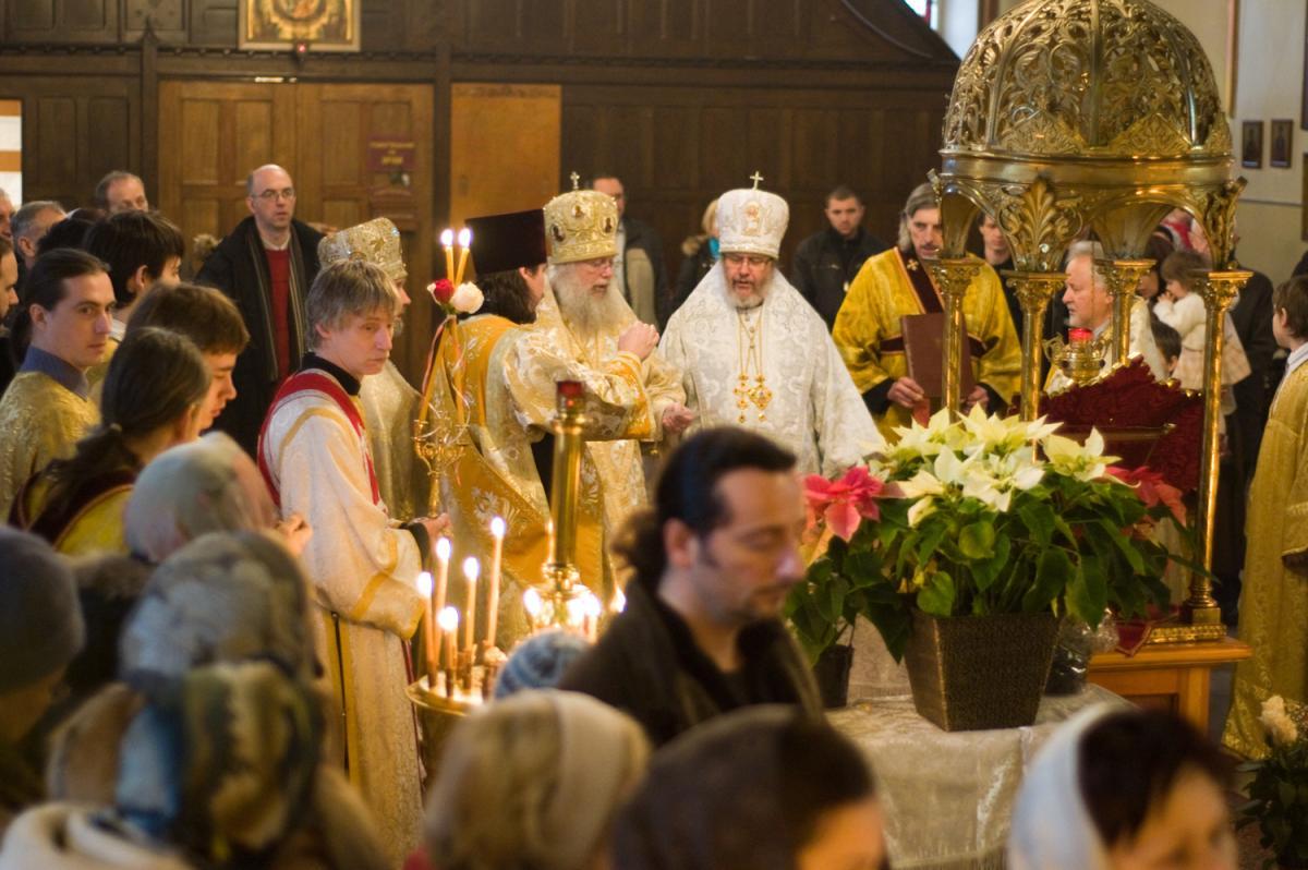 Особенно радостным было празднование Рождества Христова в нашем Храме в этом году. Стало приятной традицией, что на этот праздник наш приход всегда удостаивает своим посещением Архиепископ Канадский и Оттавский Серафим, и радость Рождества особо подчеркивается благолепием и торжественностью архиерейской службы. В сочельник, 6 января вечером, архиерейскую службу возглавил Владыка Серафим, а утром перед рождественской Литургией мы встречали двух архиереев — Преосвященнейшего архиепископа Канадского и Оттавского Серафима и епископа Квебекского Иринея. На праздничной Литургии им сослужили настоятель храма митрофорный протоиерей Анатолий Мельник и протоиерей Александр Яновский.