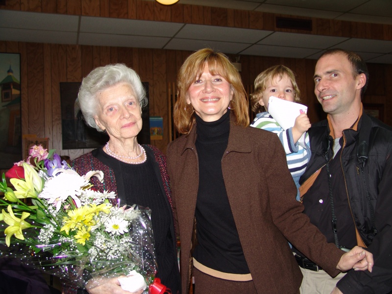 В декабре наша уважаемая Евгения Никитична Соколовская отмечала свой юбилей. Долголетний член нашего Сестричества, Евгения Никитична отдала много сил нашей церкви и по сей день продолжает трудиться на благо прихода. Она не любит говорить о своем возрасте, оставаясь все время в прекрасной форме и с молодой душой. Нам удалось сделать снимок, на котором запечатлены четыре её поколения. Во время поздравлений настоятель о. Анатолий произнёс многолетие, хор спел Многая Лета, а Сестричество приподнесло ей огромный торт!