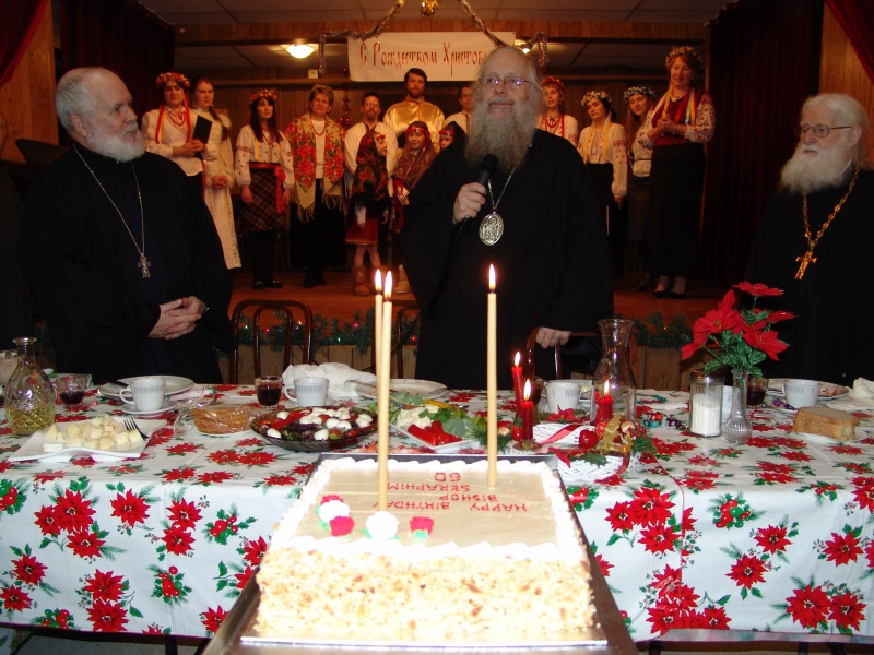 В январе многие приходы епархии поздравляли с 60-летием правящего Архиерея епископа Серафима. Наш приход не стал исключением. Во время богослужения Настоятель поздравил Владыку от имени Церковного Комитета, всех прихожан и от себя лично, вручив ему в Архиерейский Чиновник архиепископа Сильвестра в металлическом окладе. Во время обеда после литургии заместитель старосты Федор Грибовский еще раз поздравил владыку с юбилеем, а соборное Сестричество преподнесло владыке специальный торт с поздравлениями.