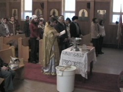 Как и в первый приезд, в греческой православной церкви собралось более сорока человек. Многие из них пришли впервые. О. Анатолий отслужил Божественную Литургию, а затем совершил малое освящение воды, которую с большим энтузиазмом разобрали прихожане для благословения и освящения своих домов. Молящиеся выразили глубокую благодарность о. Анатолию, певчим и всем, приехавшим из Монреаля.