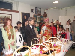 Пасхальная служба светла и духновенна. Вот батюшка поочередно появляется в праздничных ризах разнообразных цветов — голубой, желтой, зеленой, красной. Таким образом он, по давней традиции, подчеркивает торжественность и исключительность пасхальной службы и выражает ликующие чувства благодарности воскресшему Спасителю. Словно бы все православные праздники церковного года промелькнули сейчас пред нами и заключились праздником праздников. «Если бы не было Воскресения Христова, тщетна была бы наша вера» — еще раз напоминает отец настоятель слова апостола Павла.