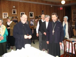 Затем приходской зал широко открыл свои двери, и Сестричество Святой Екатерины во главе с Камиль Грибовской (Camille Brosseau) любезно пригласило всех на чай. В задушевной беседе еще долго не расходились ни гости, ни прихожане. Воистину, «добро быть братии вкупе (вместе)», как поется в церковном песнопении.