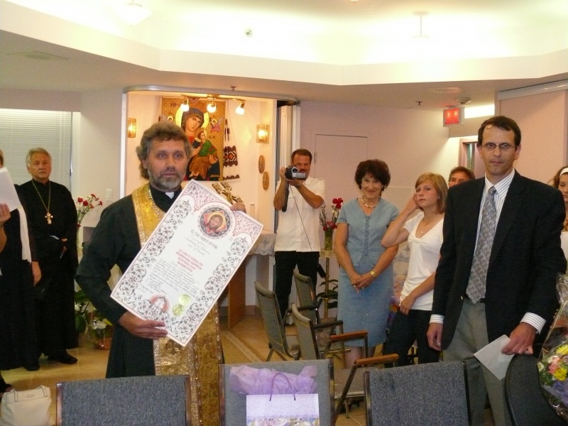 Столетие Феклы ТатарчукДети Фёклы Владимировны решили торжественно отметить этот столетний юбилей накануне дня рождения в воскресенье 14-го сентября.  Торжество проходило в приёмном зале Украинского старческого дома.  Собрались многие родственники и знакомые.  О. Анатолий, настоятель Петропавловского собора, отслужил благодарственный молебен.  Также принимали участие на службе о. Александр Яновский и хор Петропавловского собора.  В конце молебна, после неоднократного пения Многая Лета Настоятель и Михаил Александрович Войновский-Кригер от имени Приходского Совета, Сестричества и всех прихожан Петропавловского собора, поздравили Фёклу Татарчук, поблагодарили её за долголетнюю преданность приходу, и вручили ей Благословенную Грамоту от владыки Серафима, букет цветов, праздничную открытку и экземпляр столетнего юбилейного альбома.
