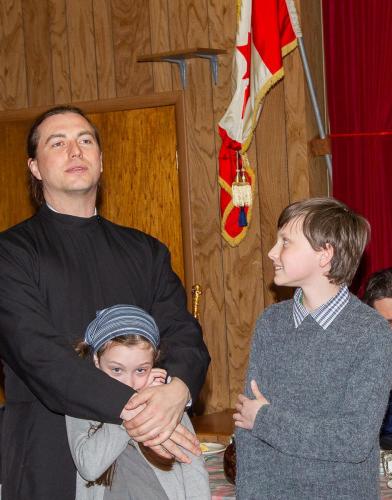 После Божественной Литургии, на которой состоялось рукоположение отца Димитрия Беляйкова, был устроен праздничный стол. Отец Димитрий обратился со словами благодарности к отцу настоятелю и ко всем прихожанам.