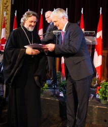 В связи с отсутствием Ю.М. Кучугуры в Монреале в этот день, на торжественной церемонии вручения медали присутствовал протоиерей Анатолий с матушкой Ириной, и наш прихожанин и фотограф Peter Ferst.