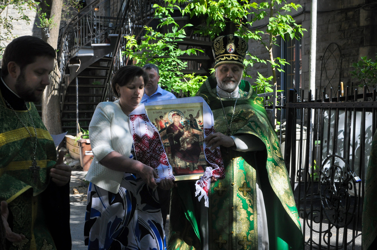 Икона передана в дар Татьяной Буханской в память о ее усопшем супруге Алексии. Он служил алтарником нашего собора. Запомнился учтивым, приветливым и всегда готовым позаботиться о ближнем. Царствие Небесное р.Б. Алексию!