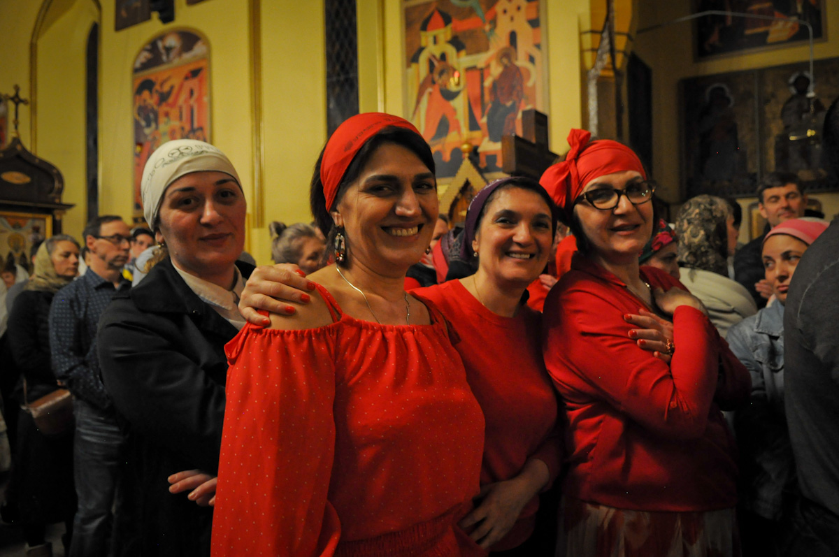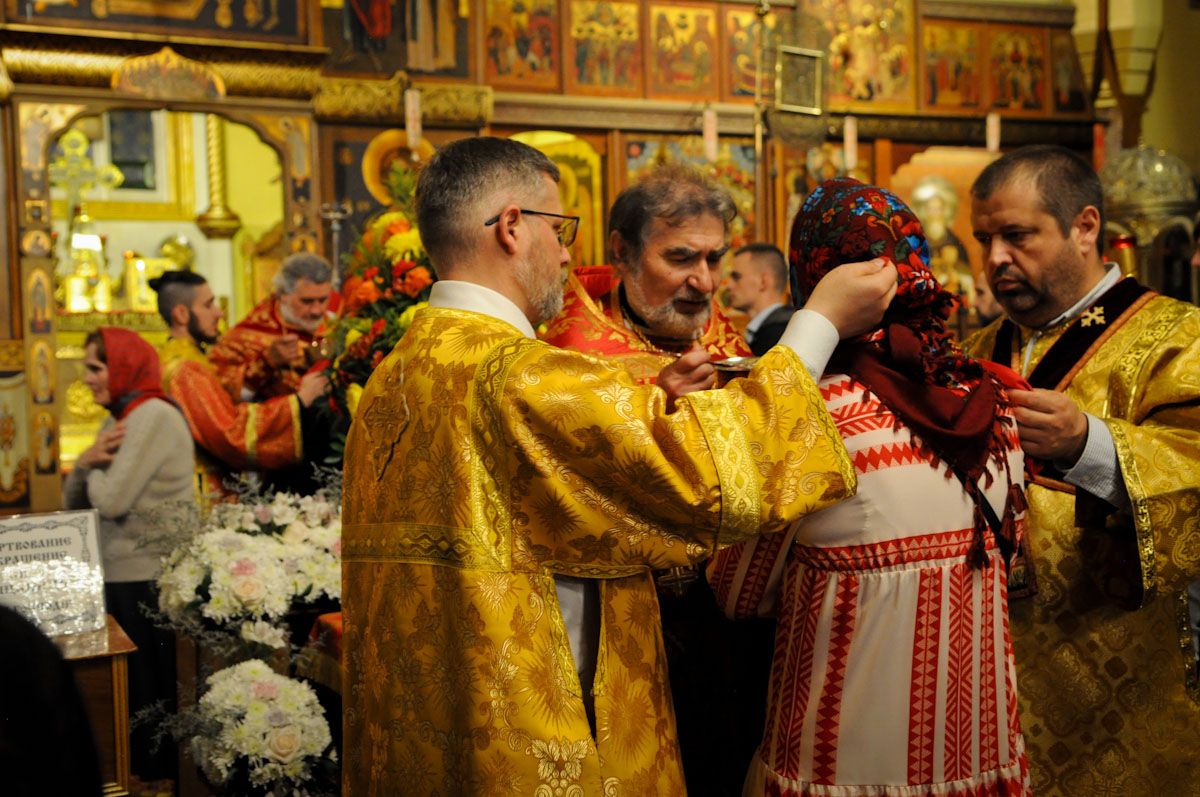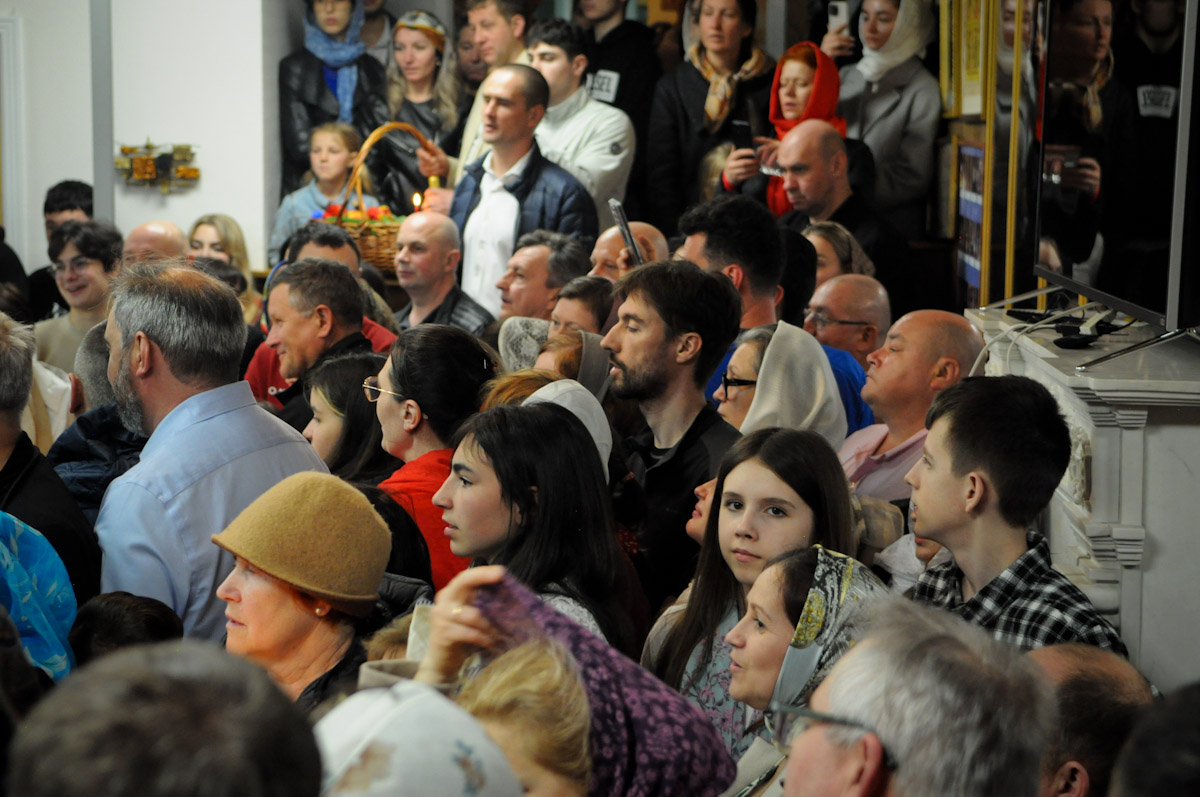 Яркое, бодрое, веселое, лишь в Пасхальный день совершаемое богослужение, будто солнечным светом наполненные песнопения, Евангелие на разных языках ― благая весть о спасении рода человеческого от власти диавола, греха и смерти, о наступлении Царства Божия, о перерождении человека во Христе, о пребывании Бога внутри любящего его человека должна облететь всю вселенную! И верующие, словно посланники князя Владимира в свое время, уже не знают, на земле они или на Небе, и получаем мы в дар по динарию ― «постившиеся и не постившиеся», как говорит свт. Иоанн Златоуст ― и причащенные, умиротворенные, движемся к рассвету нового дня.