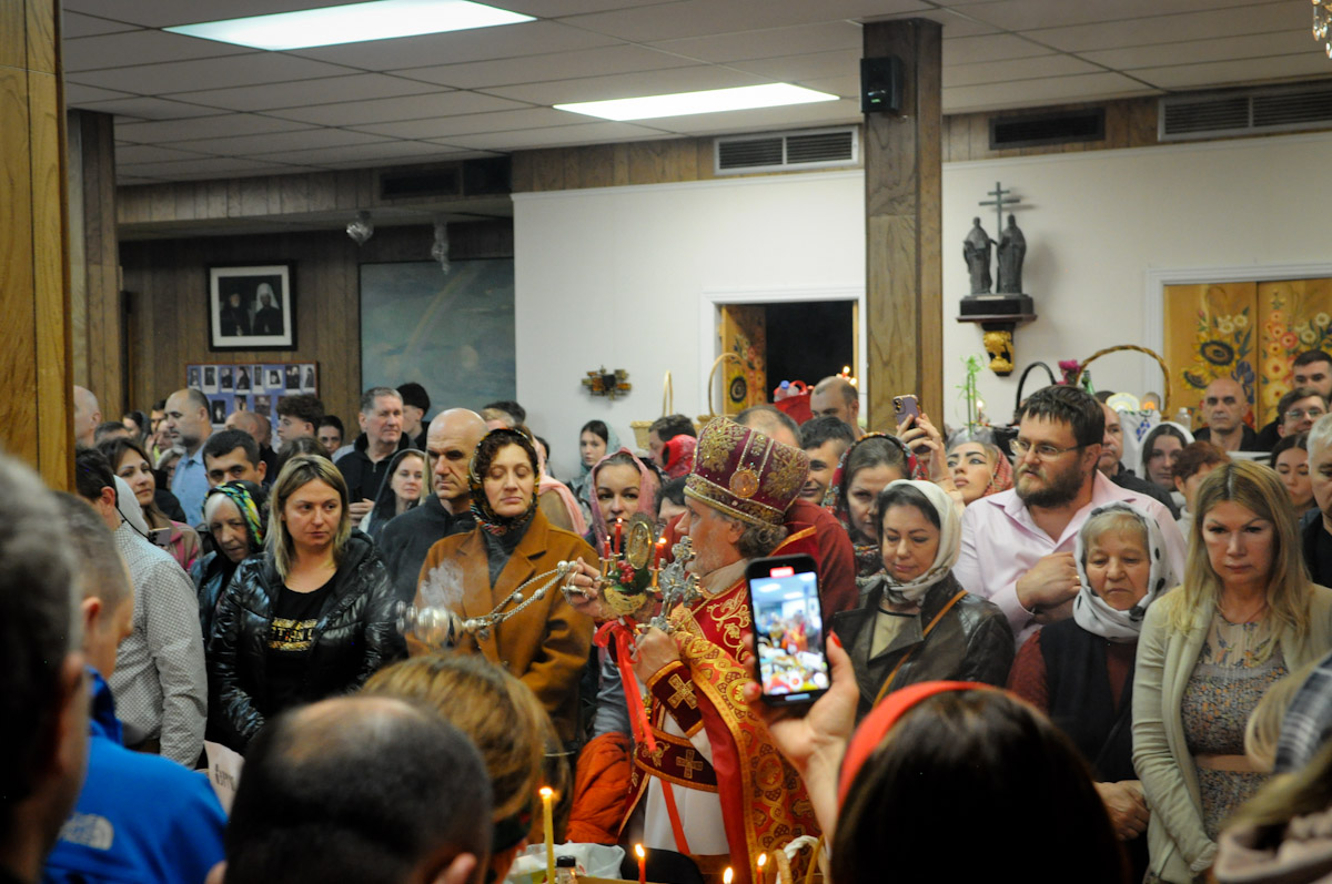 … В храме все еще темно. С благоговением уносят в алтарь Святую Плащаницу. Готовятся к Крестному ходу.