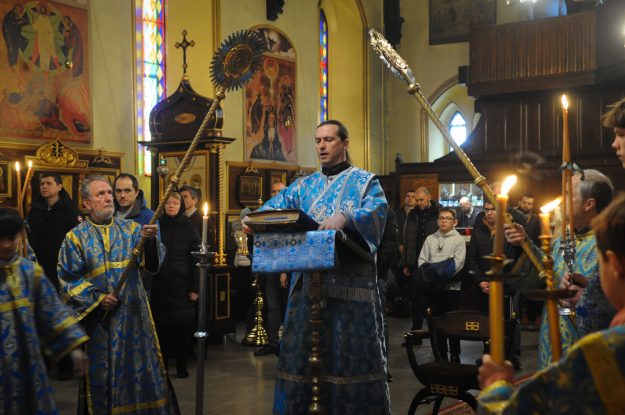 Благовещение Пресвятой Богородицы (2023 год). Евангелие готовится читать диакон Димитрий Беляйков.